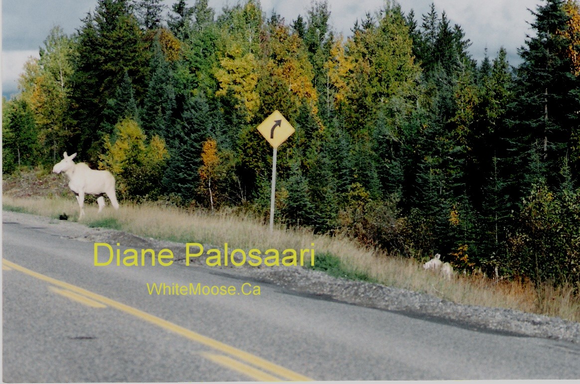 The content was extremely unique and links from other websites began to appear. The major attention the issue was receiving on the internet did wonders, but I believe other forces played a greater role in the protection effort. Private individuals and companies wishing to help were sent information packages (again from personal funds) which contained a petition for members of the public to sign, pictures, and a 10 page report on background information about the white moose. In a little over two months, over 4,000 signatures were collected from Northern Ontario, but the MNR refused to take possession of the petitions when requested to do so. However, the presence of the petitions in so many locations across the north served their purpose and again spread publicity to the matter. Bumper stickers and coffee mugs were also created to publicize the matter in store fronts and highways of the area, though most of the bumper stickers were given away and the majority of these costs were not recovered. The Foleyet Chamber of Commerce was finally convinced of the economic value of the animals, if protected from hunting and allowed to increase in numbers, and began writing our local politicians. The city of Timmins also took notice and called upon other municipalities to formally support their proposal to remove the white moose in our area from the hunting roster. As municipalities across Ontario signed on and formally endorsed the legislation, the MNR took notice.